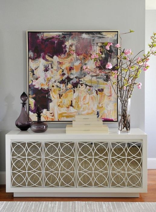- Радиатор, установленный возле холодной стены, не имеющей окна, можно удачно обыграть: закрыть экраном, дополнить консолью, над которой повесить зеркало.