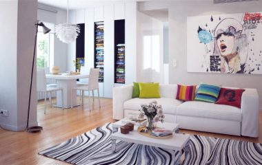 - А коврик у дивана в контрастных узорах или подушки на мягкой мебели сыграют роль акцентных деталей.