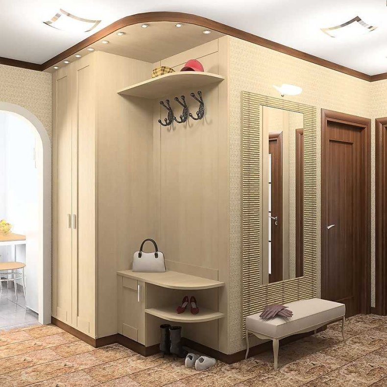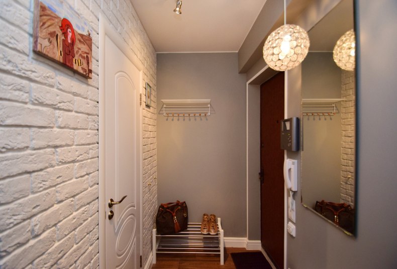 Добиться уюта в прихожей можно и другими средствами. Например, установив дополнительные бра на стену перед зеркалом и споты с мягким светом в углублениях и выступах шкафа-купе и другой мебели.