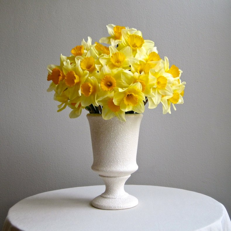 Далее, всю поверхность вазы окрашиваем аэрозольной краской. Каждый слой должен высыхать примерно 30 минут. Для яркого интерьерного аксессуара в среднем понадобится от 2 до 3 слоев яркого красителя.