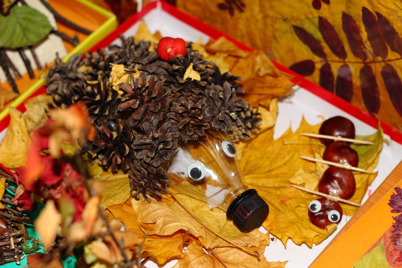 Если родители видят, что ребенок увлечен этим процессом, то продолжают изготавливать поделки дома, набирая на прогулках с детьми разнообразный подножный материал.