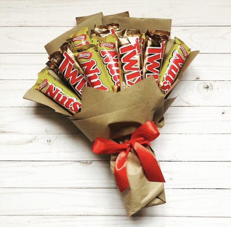 Каждому человеку по душе придется букет из еды. Девушкам и детям больше всего принесет радость сладкий букет из шоколадок, конфет и зефира, а сильной половине человечества придутся по душе корзинки, наполненные орешками, сушеной рыбкой, чипсами и так далее. «Полет фантазии» здесь может быть не ограничен.
