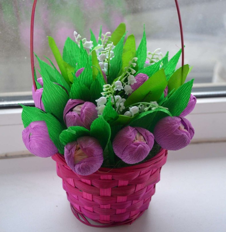 - Также заранее под нее следует подобрать емкость (корзинка, праздничный пакетик, ваза и т.д.).