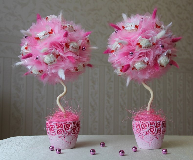 Если в запасе есть время, то стоит попробовать сделать «дерево счастья». Это займет несколько больше времени, чем обычная подделка из бумаги, однако эмоции от получения топиария будут сильнее.