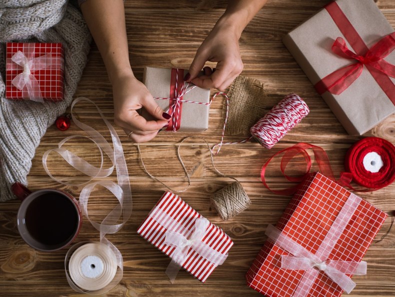 Всегда уместны «продуктовые» подарки: бутылка шампанского в рождественском мешочке, елочка из конфет или чайных пакетиков. Преподнести можно даже набор бумажных салфеток с тематическим рисунком и красиво упакованный.