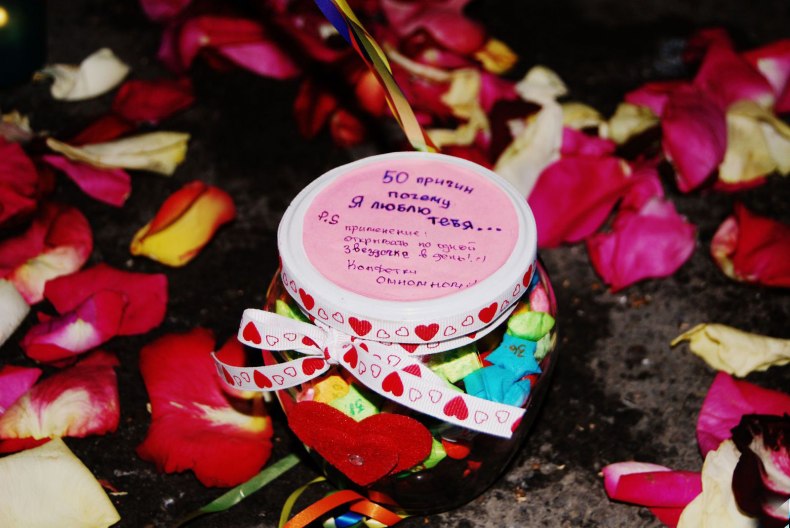 - Идеи для свиданий. Вторая половинка мужчины может сделать особую банку, в которую можно сложить идеи для свиданий. Сами мужчины с трудом могут придумать что-то новое в своих свиданиях. Любимый человек точно оценит такую банку с идеями.