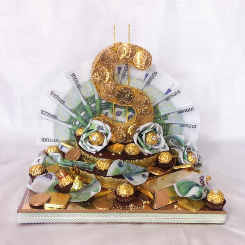 Для того чтобы вручить наличные, приобретите или сделайте своими руками конверт или шкатулку для денег. Можно вложить их в открытку, главное, чтобы наличные не выпали из нее в процессе вручения презента.