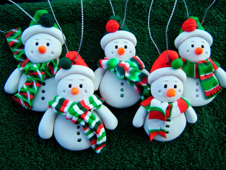 Неплохое настольное украшение и игрушка – картонный снеговик с опорой сзади. Как настоящий будет выглядеть снеговик, сделанный из папье-маше. Комнатного снеговика можно вылепить из глины, пластилина.