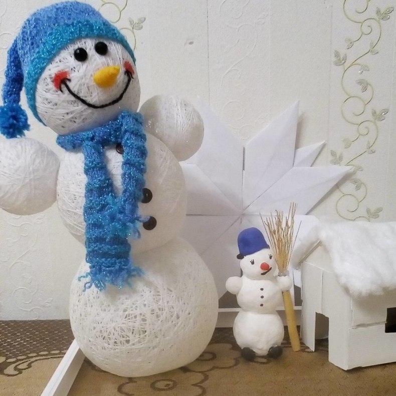 Ажурные снеговики из ниток