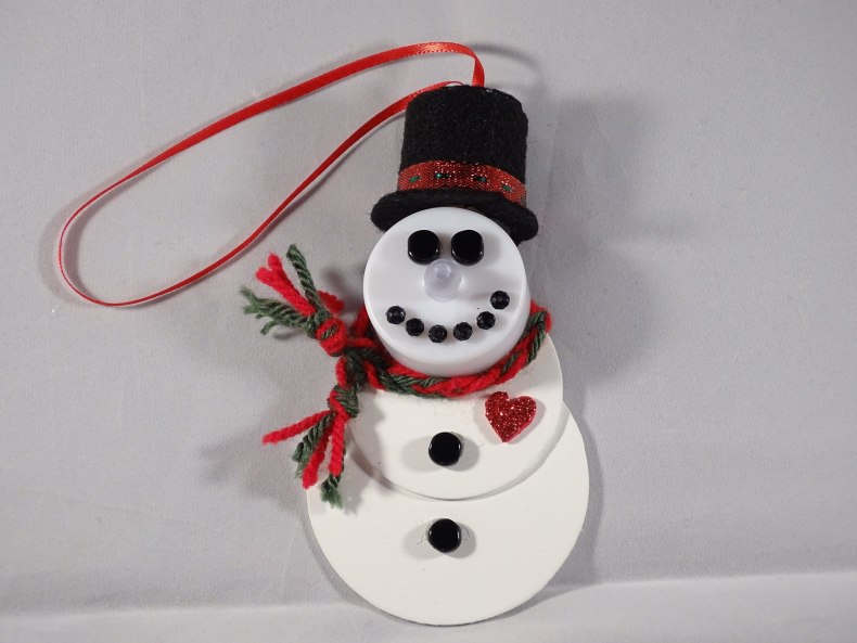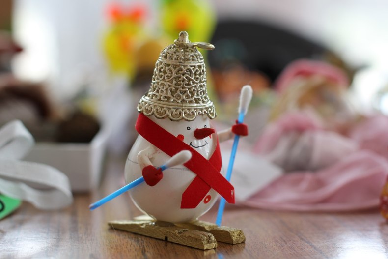 Это может быть готовая, купленная мягка игрушка, пластмассовый или деревянный снеговичок.